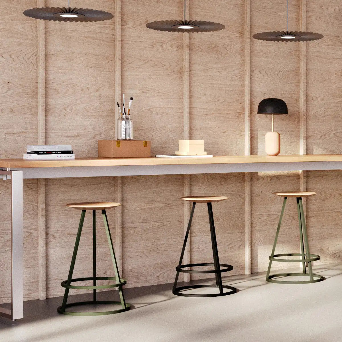 Tabouret haut Gustave 65cm, frêne naturel, métal vert cendré