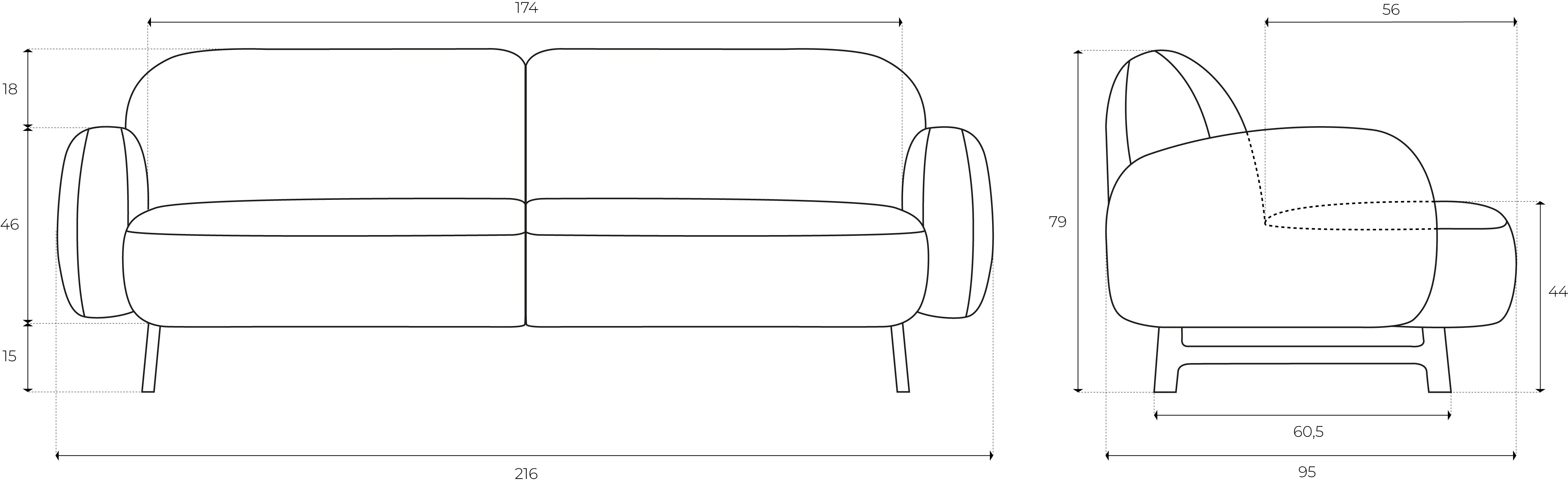 Made in Europe, Auguste sofas are made of high-density foam that does not deform and a layer of soft, supple foam for optimal comfort. They are covered with a partially recycled polyester fabric.