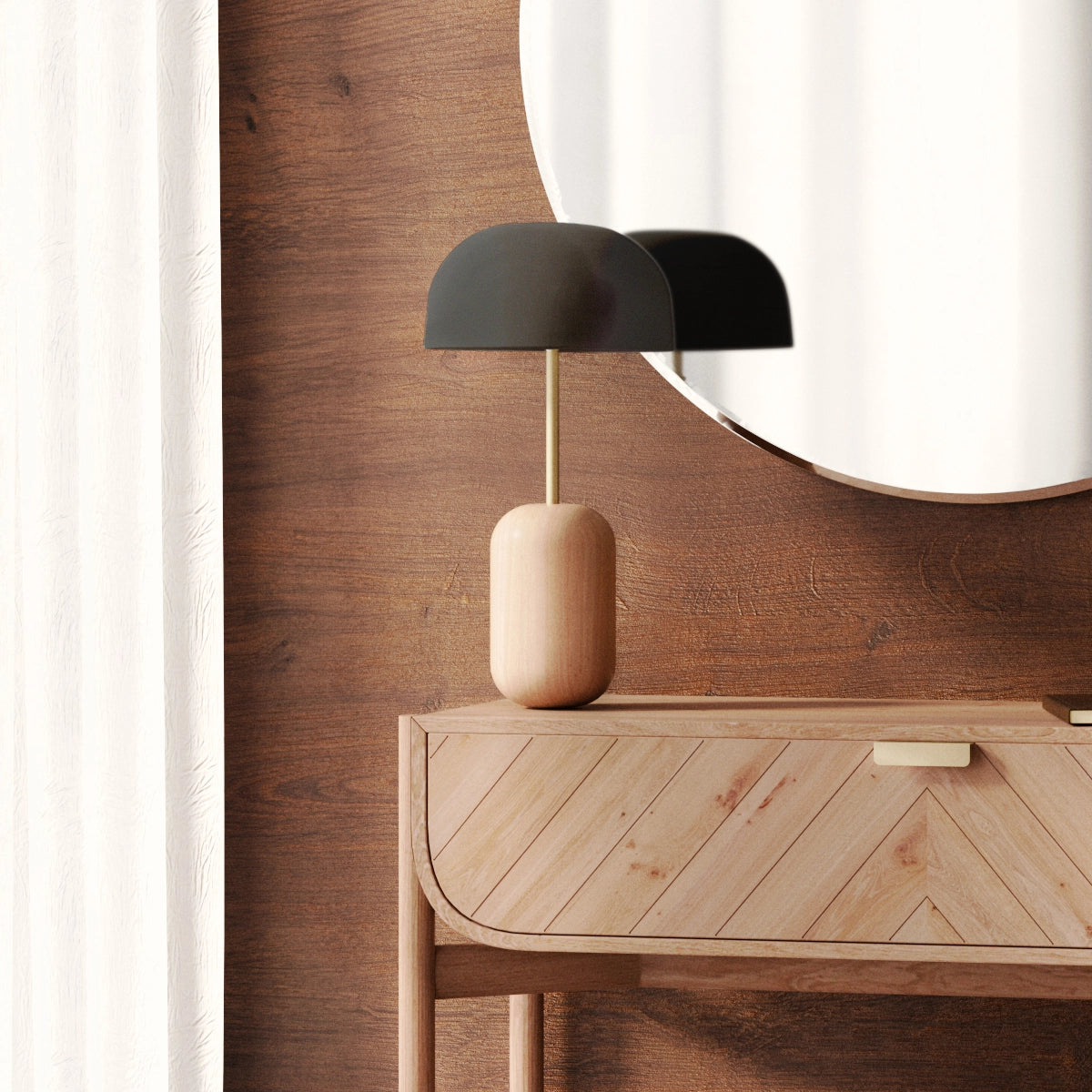 What we appreciate about Nina is her roundness, her softness. Such a pretty table lamp is bound to be good company on your desk, your bedside table, or on a console in the living room. With her round shade perched on an elegant brass stem and her turned wooden base that ensures perfect stability, Nina diffuses light and style in every room of the house.