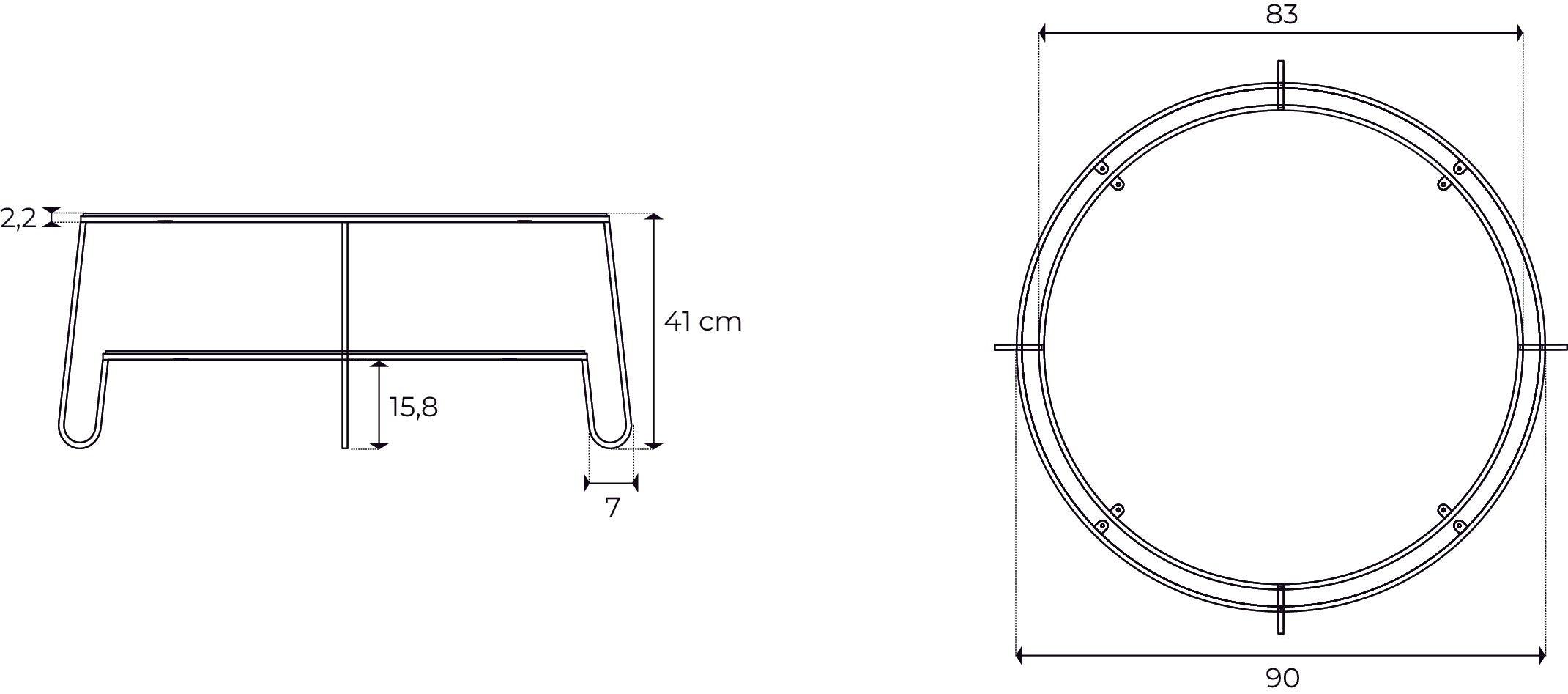 Table basse Eugénie 90cm, chêne naturel, métal gris ardoise mat